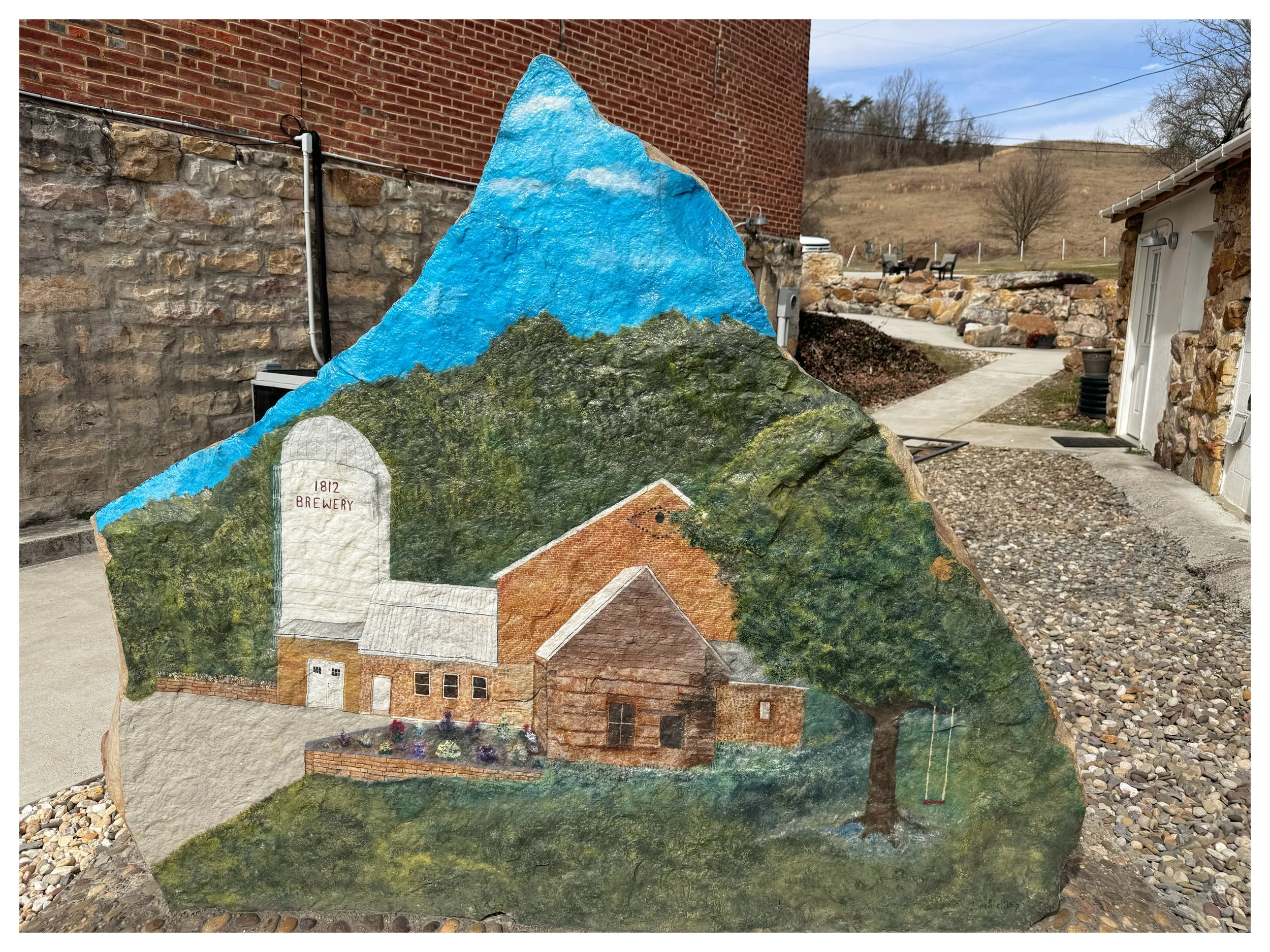 Colorful art painted on rock of the 1812 Brewery